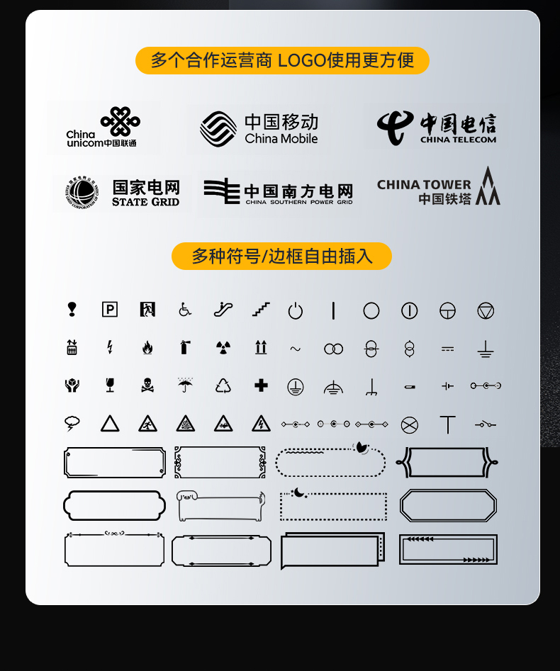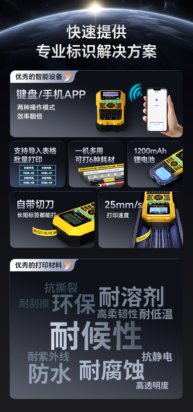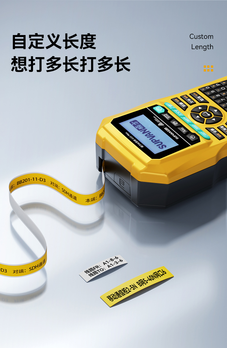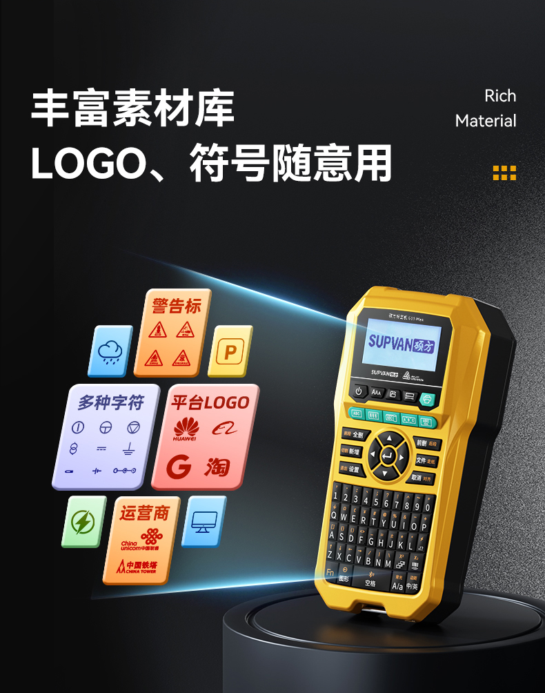 多材料支持:可打印旗形标签、缠绕标签、连续标签、热缩管及4孔线缆标识牌,满足线缆、电力、工业自动化等场景需求。